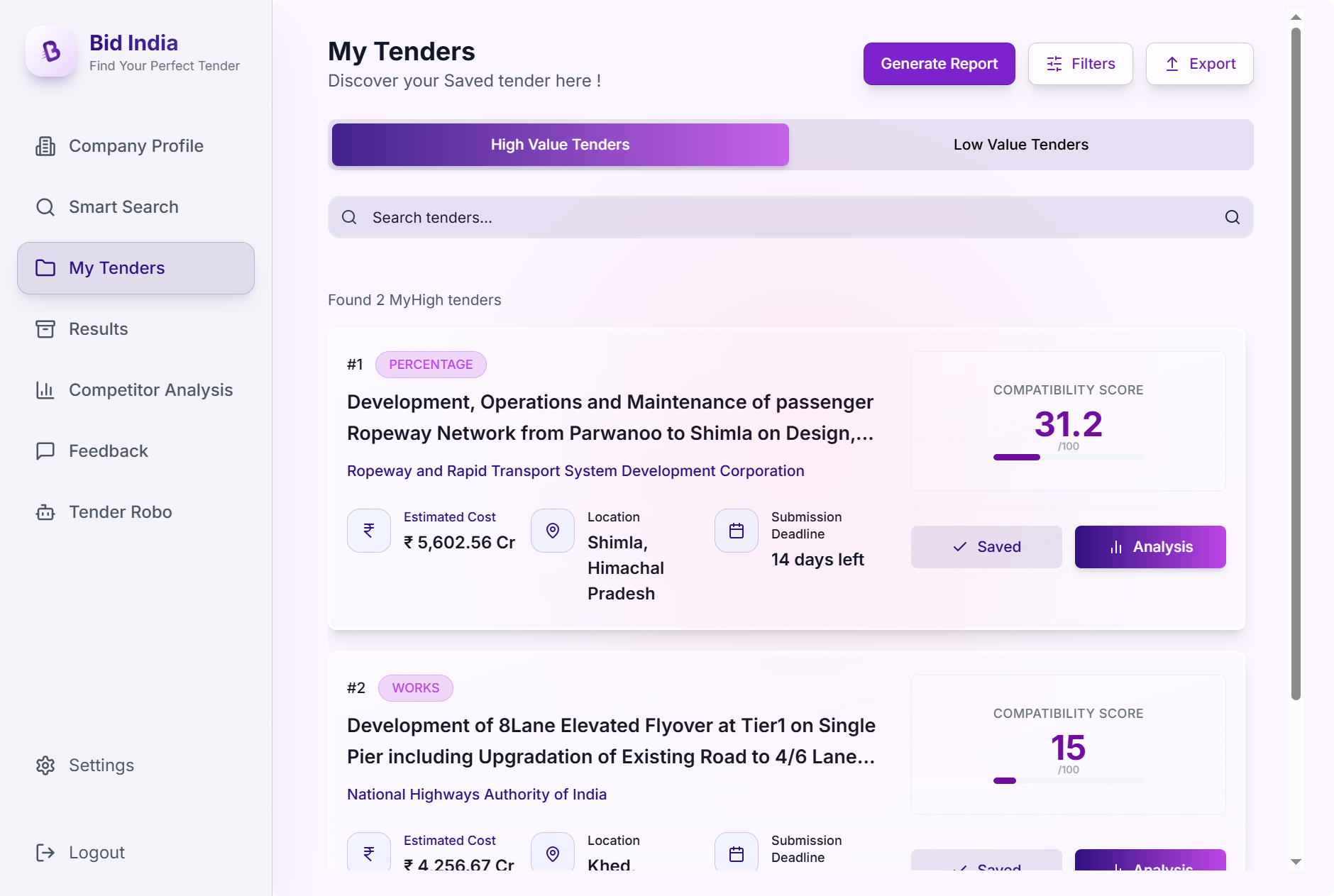 Finding tenders and resolving all your queries is just the beginning. The next step **shortlisting and creating actionable reports** has traditionally been tedious, time-consuming, and prone to errors. **Bid India makes it effortless.**